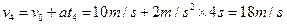 一质点做匀加速直线运动,初速度为10m/s,加速度为2m/s2。试求该质点: