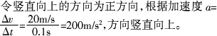 2000年8月18日,新闻联播中报道,我国空军研究人员在飞机零高度、零速度的救生脱险方面的研究取得成功.报道称:由于飞机发生故障大多数是在起飞、降落阶段,而此时的高度几乎为零高度.另外在飞行过程中会出现突然停止现象,在这种情况下,飞行员脱险非常困难.为了脱离危险必须在0.1 s的时间内向上弹离飞机,脱离飞机的速度为20 m/s,你判断一下弹离过程中的加速度a=________,方向________.