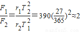 r1表示太阳到地球的距离,因r1=390r2,因此在估算时可以认为 r=r1(即近似认为太阳到月球的距离等于太阳到地球的距离),