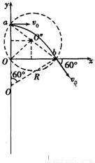点评:由题意确定粒子在磁场中运动轨迹是解题的关键之处,从而求出圆磁场的圆心位置,再运用几何关系来确定电子的运动轨迹的圆心坐标.