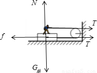 解答:解:对人和绳子整体受力分析,受重力、支持力和两倍的拉力,如图