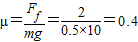 解答:解:由v-t图可知4-6s,物块匀速运动,有Ff=F=2N.