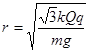 ,A和B在同一条水平线上,均可视为点电荷,整个装置处于真空中。试求A、B两球间的距离r。已知静电力常量为k。![]()
