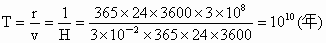 (米/秒·光年),其中光年是光在一年中行进的距离,由此估算宇宙的年龄是多少年?