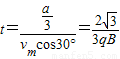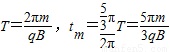 解答:解:(1)从x轴负方向出磁场的时间最长,而与左边界相切的对应最大速度为υm,圆运动半径R,