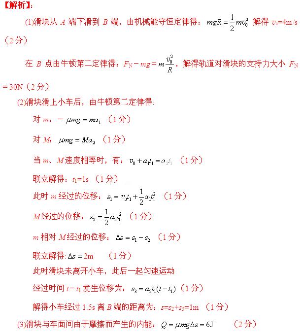 (3)滑块与车面间由于摩擦而产生的内能。