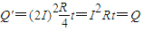 ,设通过每一个灯泡的电流有效值I,则回路总电流即通过金属杆的电流有效值为2I,金属杆第一次通过磁场的时间为t,由于每一个灯泡产生的电热Q=I2Rt,则金属杆产生