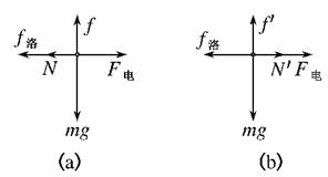 N减小,加速度也增大.当f洛=F电时,加速度达最大.以后如图(b)f洛>F电,水平方向f洛=F电+ N′,随着速度的增大, N′也不断增大,摩擦力f′=μ N′也增大,加速度