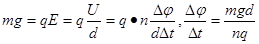 两块水平放置的金属板间的距离为d,用导线与一个n匝线圈相连,线圈中有竖直方向的磁场,如图所示,两板间有一个质量为m、电荷量为+q的油滴恰好处于静止状态,则线圈中的磁感应强度B的变化情况和磁通量的变化率分别是 ( )