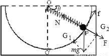 如图所示,质量为M、半径为R的半圆形容器静放在粗糙水平地面上,O为圆心.有一原长为2R,劲度系数为K=A.小球受到轻弹簧的弹力大小为mg