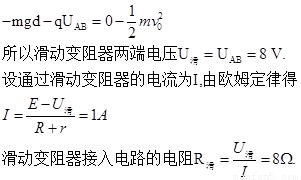 【解析】(1)小球进入板间后,受重力和电场力的作用,且到A板时速度为零.设两极间电压为UAB,由动能定理得