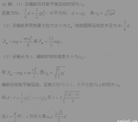 14.СÃ÷Õ¾ÔÚˮƽµØÃæÉÏ£¬ÊÖÎÕ²»¿ÉÉ쳤µÄÇáÉþÒ»¶Ë£¬ÉþµÄÁíÒ»¶ËϵÓÐÖÊÁ¿ÎªmµÄСÇò£¬Ë¦¶¯ÊÖÍó£¬Ê¹ÇòÔÚÊúÖ±Æ½ÃæÄÚ×öÔ²ÖÜÔ˶¯£¬µ±Çòij´ÎÔ˶¯µ½×îµÍµã£¬ÉþͻȻ¶Ïµô£¬Çò·ÉÐÐˮƽ¾àÀëdºóÂ䵨£¬ÈçͼËùʾ¡£ÒÑÖªÎÕÉþµÄÊÖÀëµØÃæ¸ß¶ÈΪd£¬ÊÖÓëÇòÖ®¼äµÄÉþ³¤Îª