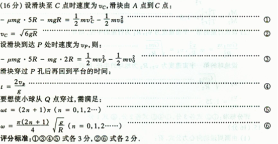 【小题2】若滑块滑过C点后能通过P孔,又恰能从Q孔落下,则平台转动的角速度ω应满足什么条件?![]()