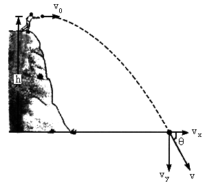 θ =55°按题意作图.物体在水平方向不受力,所以加速度为 0,速度总等于初速度 |