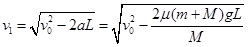 如图,质量为M、长为L、高为h的矩形滑块置于水平地面上,滑块与地面间动摩擦因数为μ;滑块上表面光滑,其右端放置一个质量为m的小球。用水平外力击打滑块左端,使其在极短时间内获得向右的速度v0,经过一段时间后小球落地。求小球落地时距滑块左端的水平距离。