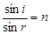 解:设入射角为i,折射角为r,由折射定律得:
