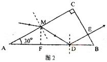 如果入射光线在法线的左侧,光路图如图2所示。设折射光线与AB的交点为D。