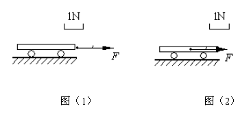 如图所示,一辆小车放在水平地面上,用2N向右的水平力作用在小车上,画出水平力的图示。