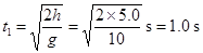 ÊúÖ±ËÙ¶ÈΪ vy=gt1=10£®0 m/s £¨1·Ö£©
