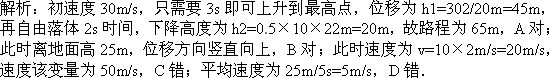 某物体以30 m/s的初速度竖直上抛,不计空气阻力,g取10 m/s2.5 s内物体的