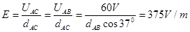 图所示,在匀强电场中,电量q = 5.0×10-10C的正电荷,分别在平行于电场方向的平面内由A点运动到B点和由A点运动到C点,电场力做的功都为3.0×10-8J.已知△ABC中,∠A=37°,∠C=90°,AB=20cm.( cos37° = 0.8,sin37° = 0.6 ) 求