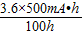 解答:解:由图中所提供的电池的容量为“3.6V,500mA?h”,