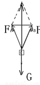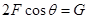 试题分析:物体受到两个拉力是同一根绳子绕过挂钩的两段绳子拉力,所以两个拉力大小相等,根据受力平衡,合力竖直向上大小等于重力,受力分析如下图。设绳子和竖直方向夹角为