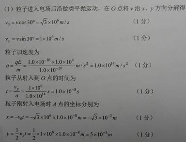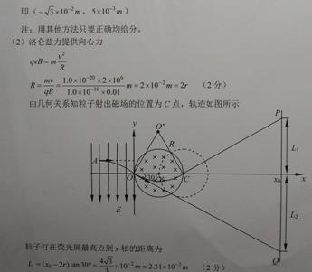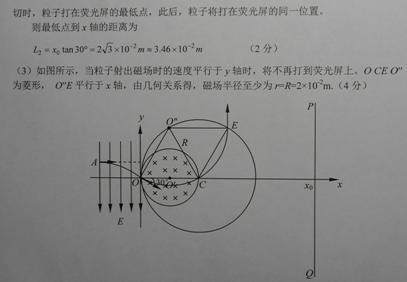 ÈçͼËùʾ£¬xoyÆ½ÃæÄÚ£¬yÖá×ó²àÓз½ÏòÊúÖ±ÏòÏ£¬µç³¡Ç¿¶ÈΪE=1£®0¡Á1 04 N£¯µÄÔÈÇ¿µç³¡¡£ÔÚYÖáÓÒ²àÓÐÒ»¸ö±ß½çΪԲÐεÄÔÈÇ¿´Å³¡ÇøÓò£¬Ô²ÐÄO¡¯Î»ÓÚxÖáÉÏ,°ë¾¶Îªr=0£®01 m£¬´Å³¡×î×ó±ßÓëYÖáÏàÇÐÓÚOµã£¬´Å¸ÐӦǿ¶ÈΪB=0£®01T£¬·½Ïò´¹Ö±Ö½ÃæÏòÀï¡£ÔÚ×ø±êxo=0£®06m´¦Óд¹Ö±ÓÚxÖáµÄ×ã¹»´óµÄÓ«¹âÆÁPQ¡£Ò»Êø´øÕýµçµÄÁ£×Ӵӵ糡ÖеÄAµã£¨Í¼ÖÐδ±ê³ö£©ÒÔ´¹Ö±Óڵ糡µÄ³õËÙ¶ÈÏòÓÒÔ˶¯£¬´©³öµç³¡Ê±Ç¡ºÃͨ¹ý×ø±êԵ㣬ËÙ¶È´óСΪv=2 ¡Á106m£¯s£¬·½ÏòÓëxÖáÕýÏò³É300½ÇбÏòÏ¡£ÒÑÖªÁ£×ÓµÄÖÊÁ¿Îªm=1£®0¡Ál0-2kg£¬µçÁ¿Îªq=1£®0¡Á10-10C£¬ÖØÁ¦²»¼Æ¡£