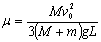 质量为M长度为L的小车静止在光滑水平面上,小车的右端有一个挡板。一块质量为m的铁块(可视为质点)以初速度v0从左端滑上小车,滑到小车右端和挡板发生碰撞后又返回,碰撞时间极短,而且碰撞过程中动能没有损失。铁块返回到小车中点处时,恰好和小车保持相对静止。求铁块和小车上表面间的动摩擦因数μ。