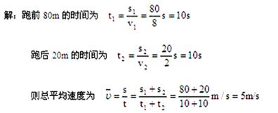 某运动员在百米跑道上以8 m/s的速度跑了80 m,然后又以2 m/s的速度走了20 m,这个运动员通过这段路的平均速度是多少?