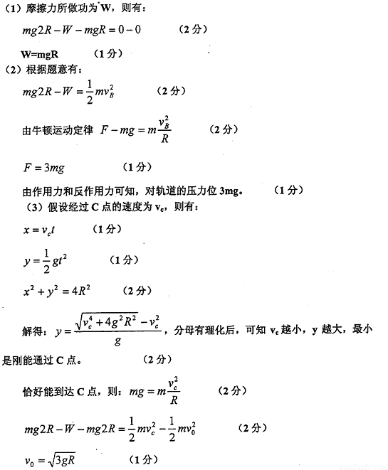 ÈçͼËùʾ£¬°ë¾¶2RËÄ·ÖÖ®Ò»Ô²»¡Óë°ë¾¶ÎªRµÄ¹â»¬°ëÔ²ÔÚBµãÏàÁ¬½Ó£¬CÓëAµãµÈ¸ß£¬Ò»¸öÖÊÁ¿ÎªmµÄСÇò´ÓAµãÓɾ²Ö¹ÊÍ·Å£¬Ç¡ºÃµ½´ïÓëÔ²ÐÄOµÈ¸ßµÄDµã¡£Çó£º