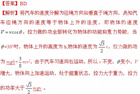 A.从开始到绳与水平夹角为30°时,拉力做功mgh