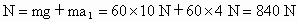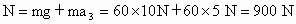 (1) 匀速上升时,a=0所以: N-mg=0,N=mg=600N(2) 加速上升时
