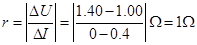解析试题分析:电源的U-I图像,纵轴截距为电源电动势,由图可得电池电动势为1.40V;电池内电阻为![]()