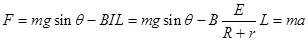 试题分析:导体在斜面方向上受到沿斜面向上的安培力,沿斜面向下的重力分力,即![]()