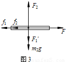 £¨3£©È¡Ä¾°åΪÑо¿¶ÔÏó£¬Ð¡½ðÊô¿éÔÚľ°åÉÏÔ˶¯Ê±£¬Ä¾°åÊÜÁ¦Èç´ðͼ3Ëùʾ£®f2=¦ÌF2=¦Ì£¨m1+m2£©g=0.20×0.70×10=1.4N