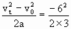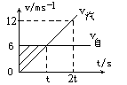 t=v自/a=6/3=2(s) Δs=vt-at2/2=6×2-3×22/2=6(m). (2)由图可看出:在t时刻以后,由v自或与v汽线组成的三角形面积与标有斜线的三象形面积相等时,两车的位移相等(即相遇).所以由图得相遇时,
