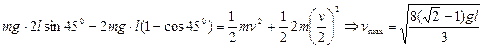 利用力矩平衡,A球转过450角,速度达到最大。![]()