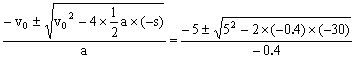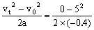 (1)判断汽车刹车所经历运动时间 由0=v0+at及加速度a=-0.4m/s2得:t=- 汽车刹车经过12.5s后停下来,因此20s内汽车的位移只是12.5s内的位移. 根据vt2-v02=2as得: s= 或用 s=v0t+ (2)根据s=v0t+ t= 解得:t1=10(s),t2=15(s)(t2是质点经t1后继续前进到达最远点后反方向加速运动重新达到位移为s时所经历的时间,很显然,t2不合题意,必须舍去) (3)把汽车的减速过程看成初速为零的匀加速运动,求出汽车以0.4m/2的加速度经过2.5s的位移,即: s′= ∵ 静止前2.5s末即是开始减速后的10s末,10s末速度v10=v0+at=5-0.4×10=1(m/s), ∴