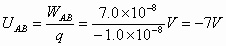 将一个电荷量为1.0×10-8 C的负电荷,从无穷远处移到电场中的A点,克服电场力做功2.0×10-8 J,现将该电荷从A点移到B点,电场力做功7.0×10-8 J.试求A、B两点电势(取无穷远处电势为零)