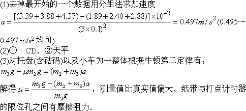 ①为测量动摩擦因数,下列物理量中还应测量的有________.(填入所选物理量前的字母)