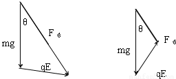 时,则电场力小于重力,电场力与合力可能成锐角,也可能成钝角,如右图所示.