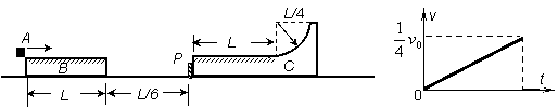 如图所示,一滑板B静止在水平面上,上表面所在平面与固定于竖直平面内、半径为R的1/4圆形光滑轨道相切于Q.一物块A从圆形轨道与圆心等高的P点无初速度释放,当物块经过Q点滑上滑板之后即刻受到大小F=2μmg、水平向左的恒力持续作用.已知物块、滑板的质量均为m,物块与滑板间的动摩擦因数μ=3μ,滑板与水平面间的动摩擦因数μ=μ,物块可视为质点,重力加速度取g.(1)求物块滑到Q点的速度大小;