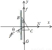 解答:解:对物块受力分析,受推力F、重力G、支持力N和向上的静摩擦力f,如图