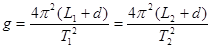 利用单摆测重力加速度时, 没有测摆球的直径, 先用直尺测出悬点到球底的距离L1, 测出相应的周期T1, 再将L1改变为L2, 又测出相应的周期T2, 则测出的重力加速度g的表达式应为 .