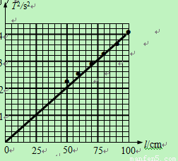 请你帮助该同学以l为横坐标,T 2为纵坐标将所得数据在图乙所示的坐标系中作出图线,并根据图线求得重力加速度g= m/s2 (取3位有效数字) 。