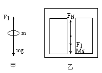 环在竖直方向上受力如下图甲所示,受一个重力,及箱子的杆给它的竖直向上的摩擦力Ff,根据牛顿第三定律,环应给杆一个竖直向下的摩擦力Ff,故箱子竖直方向上受力如下图乙所示,受重力Mg,地面对它的支持力FN,及环给它的摩擦力Ff,由于箱子处于平衡状态,可得