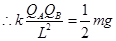 设球A在向电荷B运动的过程中,与B相距为r时速度最大,此时重力等于库仑力