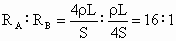 两根完全相同的金属裸导体,如果把导体A均匀拉长到原来的2倍,把导体B对折,则它们的电阻之比
