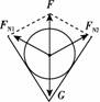 设V形槽两侧对圆柱体的弹力大小分别为FN1 、FN2,在竖直平面内,圆柱体受到重力G、两侧的弹力FN1 、FN2作用,如图所示,由对称性可知,FN1=FN2=G.